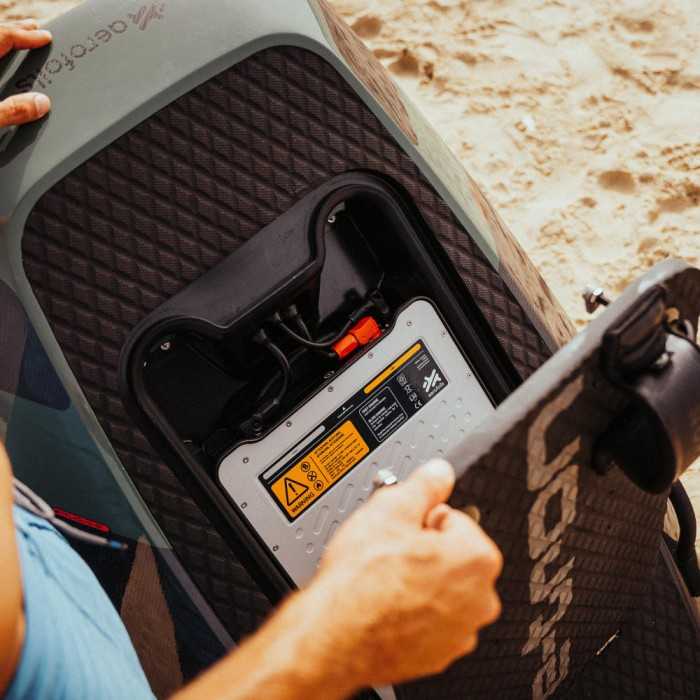 * Audi eFoil Adventure: The Adventure model with a volume of 103 liters is our all-rounder eFoil. 70% of our customers opt for this model. The 176 cm x 72 cm board offers enough buoyancy for a safe take-off and a soft landing.