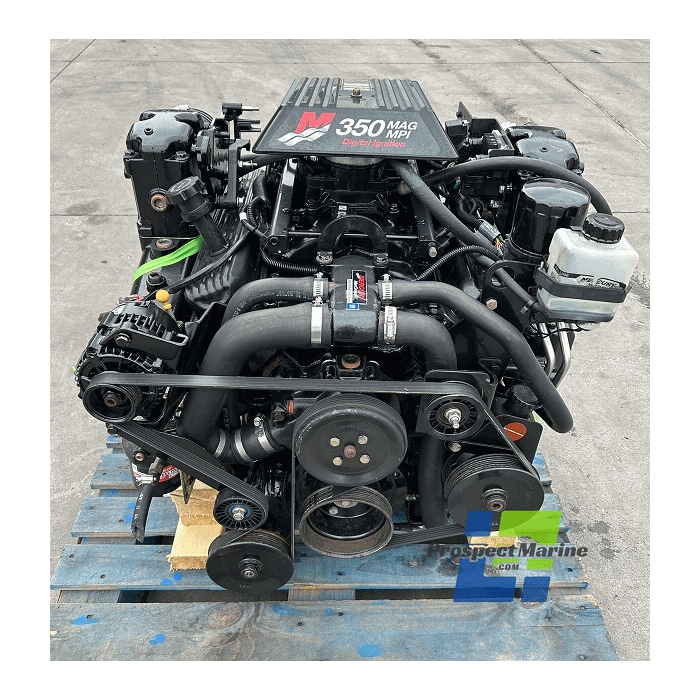2000 Mercruiser 5.7L 350 MAG MPI has a 300 horsepower rating, a displacement of 5.7 liters (350 cubic inches), and uses multi-port fuel injection.